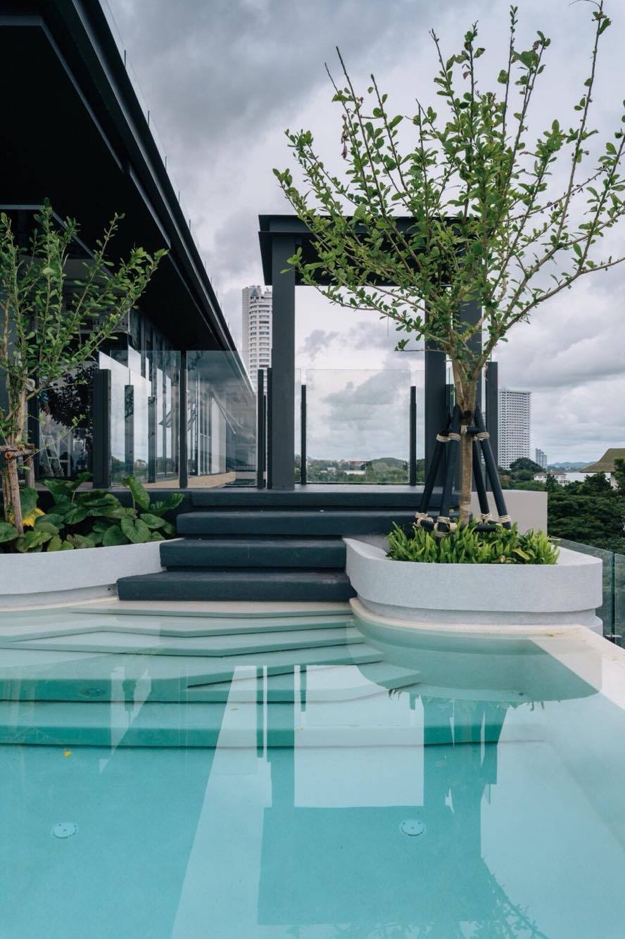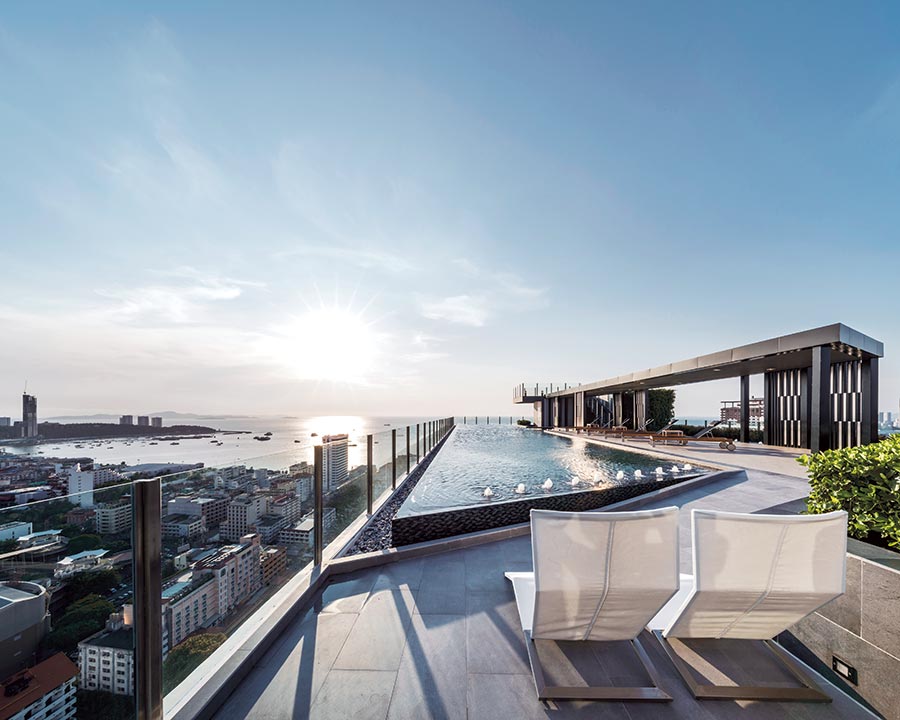 แม้ตัวคอนโดมิเนียมจะอยู่ห่างจากทะเล 200 เมตร แต่การออกแบบพื้นที่ส่วนกลางของโครงการ X2 Vibe PattayaSeaphereช่วยทำให้คุณรู้สึกได้อยู่ใกล้ทะเลตลอดเวลา ด้วยการออกแบบสระว่ายน้ำจากเส้นสายพริ้วไหวของแนวคลื่นทะเลและผืนทราย สีขาวของสระช่วยขับให้น้ำไล่ระดับสีฟ้าตามท้องทะเล อีกทั้งพื้นที่นั่งพักผ่อนที่ถูกกดลงไปในสระ นอกจากช่วยให้รู้สึกเป็นส่วนตัวแล้ว ยังทำให้ระดับที่นั่ง เสมอไปกับผิวน้ำ เสมือนเส้นขอบฟ้า ทะเล และสระว่ายน้ำดูต่อเนื่องเป็นผืนเดียวกัน หรือหากอยากชมวิวทะเลแบบ 360 องศาก็สามารถชมได้ที่ Sky pavilion ที่ยื่นออกจากตัวอาคาร