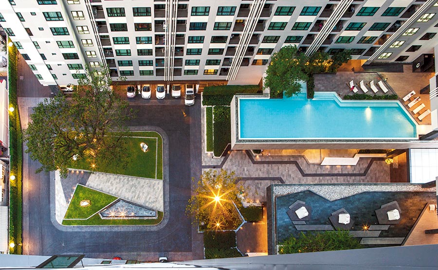 รูปแบบพื้นที่พักอาศัยที่ดูจะเหมาะสำหรับวิถีชีวิตของคนเมืองมากที่สุดคงหนีไม่พ้น‘คอนโดมิเนียม’ โดยเฉพาะผู้ตั้งธงความคิดในการเลือกทำเลของโครงการ ที่สามารถเดินทางเข้าถึงได้อย่างสะดวกสบายนอกจากนี้แล้ว พื้นที่ส่วนกลาง ที่พร้อมเสิร์ฟฟังก์ชันการใช้งานตอบโจทย์รูปแบบการใช้ชีวิตอย่างหลากหลาย ยังเป็นอีกหนึ่งข้อสังเกตที่มีหลายโครงการพยายามใช้มาเป็นจุดเด่นเพื่อดึงดูดความสนใจ อาทิ การมีสวนสีเขียวชอุ่ม มีสระว่ายน้ำสีฟ้าใส หรือมีพื้นที่นั่งเล่นสุดชิลไว้หลบมุมจากความวุ่นวายของเมืองใหญ่