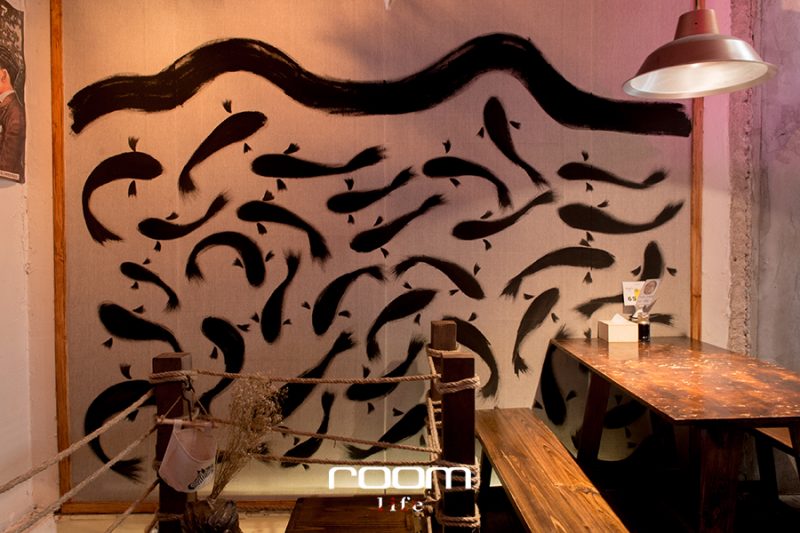 ร้านขนาดอบอุ่น 1 คูหาได้รับการ รีโนเวทตึกแถวเก่า และตกแต่งในสไตล์ ‘วาบิซาบิ’ เรียบง่าย จากฝีมือการออกแบบของเจ้าของร้าน เน้นโชว์วัสดุไม้เก่าอย่างหน้าบาร์ที่ไม่ผ่านการแปรรูป อย่างไรก็อย่างนั้น เพื่อให้ได้ซึมซับ และมองเห็นความงามที่แท้จริงของไม้ด้วยธรรมชาติของมันเอง ส่วนชุดเฟอร์นิเจอร์ก็ออกแบบเองโดยเจ้าของร้านเช่นกัน และหากขึ้นไปยังชั้น 2 จะได้ยลโฉมฝีมือวาดภาพหมีตัวโตของอีกหนึ่งหุ้นส่วนร้านทั้งสองฝั่งผนังรอต้อนรับ