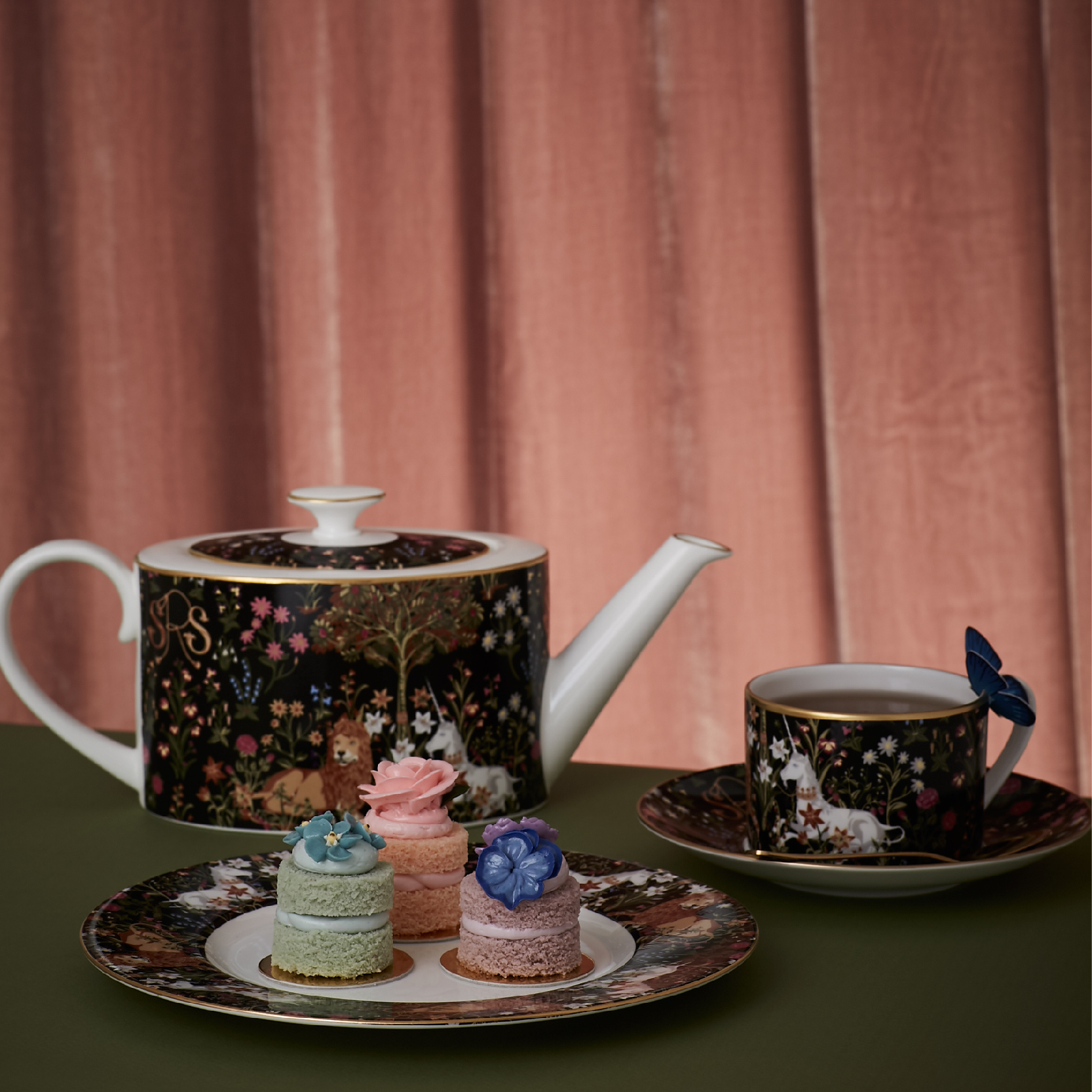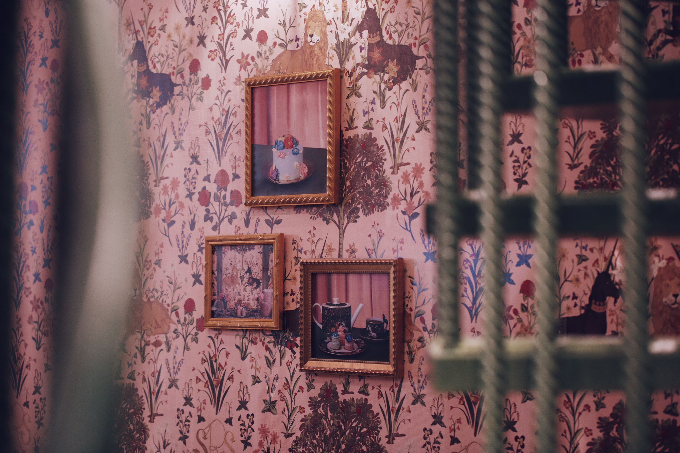 การตกแต่งภายใน คาเฟ่สีชมพู แห่งนี้เน้นลวดลายดอกไม้ และลวดลายพิเศษบนวอลล์เปเปอร์และชุดน้ำชาโบนไชน่าโดย House of Hacky แบรนด์อินทีเรียที่มีชื่อเสียงจากประเทศอังกฤษ ซึ่งเป็นการร่วมมือครั้งแรกของทั้ง 2 แบรนด์ที่ร่วมมือกันสร้างสรรค์พื้นที่คาเฟ่แสนอบอุ่น ที่ออกแบบให้เป็นโลกใบใหม่ที่แสนหวานด้วยโทนสี ชมพู เขียวนำมาผสมผสานกับการจัดวางเฟอร์นิเจอร์ และรายละเอียดของตกแต่งที่ตั้งใจออกแบบลวดลายเฉพาะตัวที่ยังคงความเป็นตัวตนของแบรนด์กับความเป็นผู้หญิงที่มีความอ่อนหวานที่เต็มเปี่ยมไปด้วยพลัง
