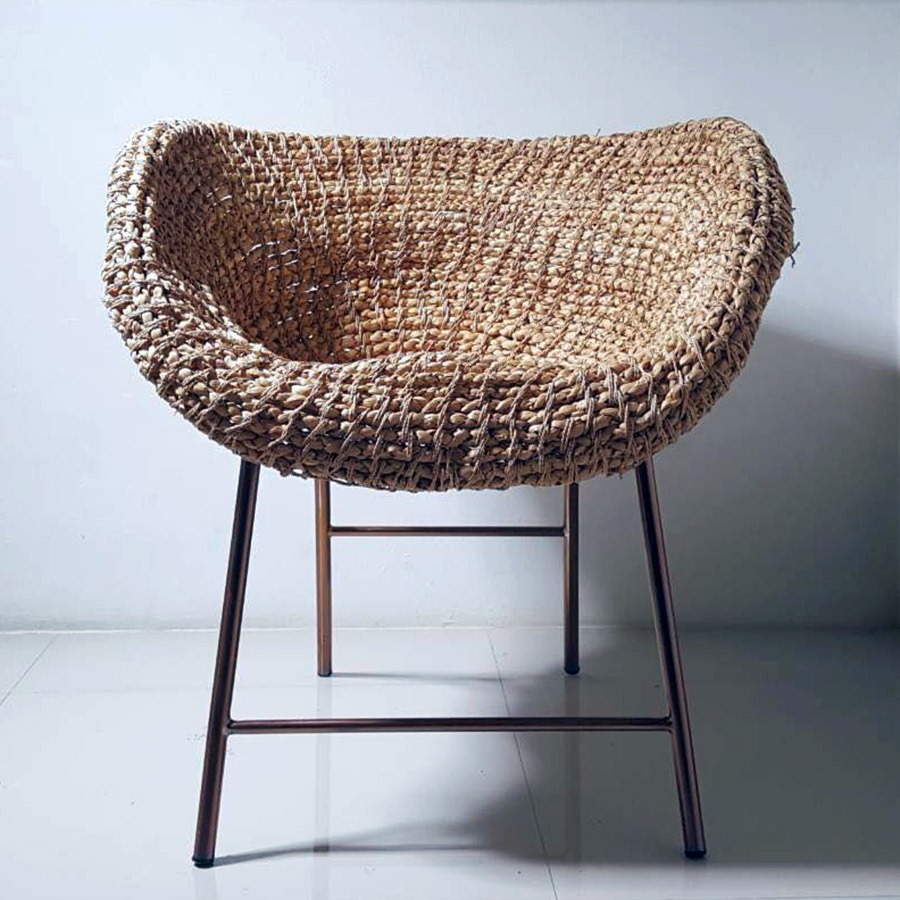 การผลิตเก้าอี้ตัวนี้เป็นการพัฒนาต่อยอดจากโครงการงานหัตถกรรมผักตบชวาร่วมกับช่างหัตถกรรม จ.สุพรรณบุรี โดยพัฒนารูปแบบจากการสานแผ่นรองจานนำมาเข้าทรงสานบนเก้าอี้ยุค 90’s รับด้วยโครงสร้างขาสแตนเลสทำสีทองแดงให้สอดรับกับสีของวัสดุสาน